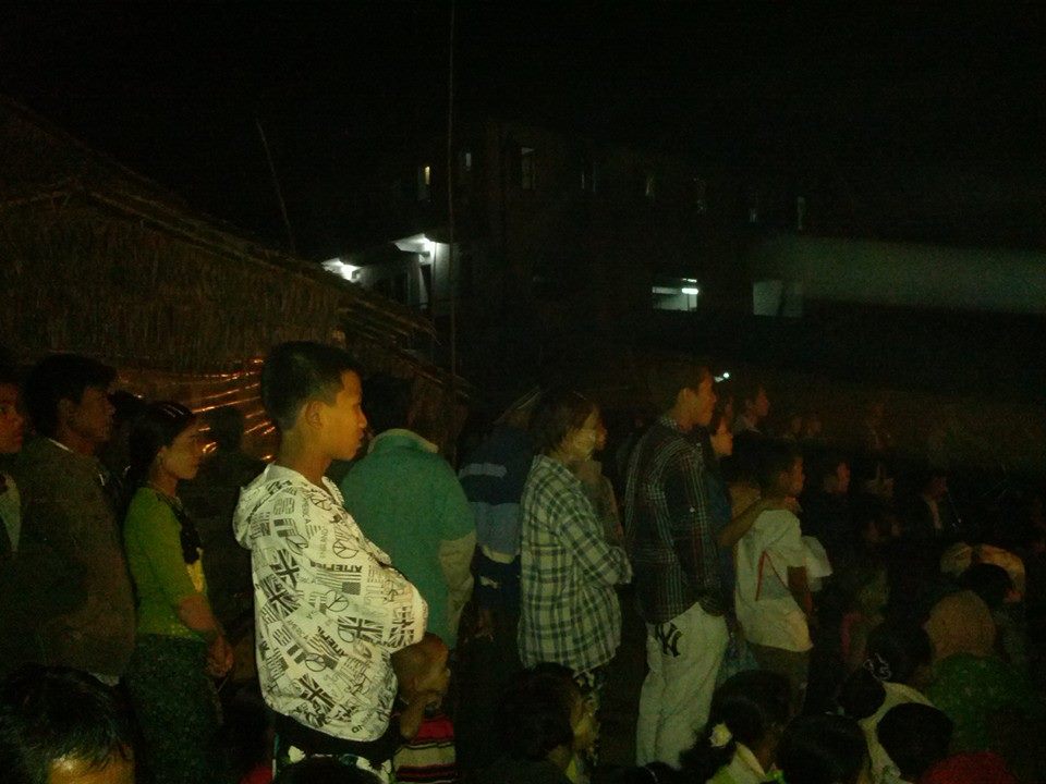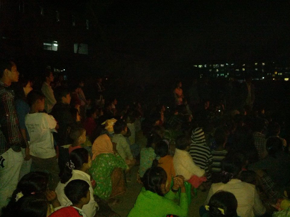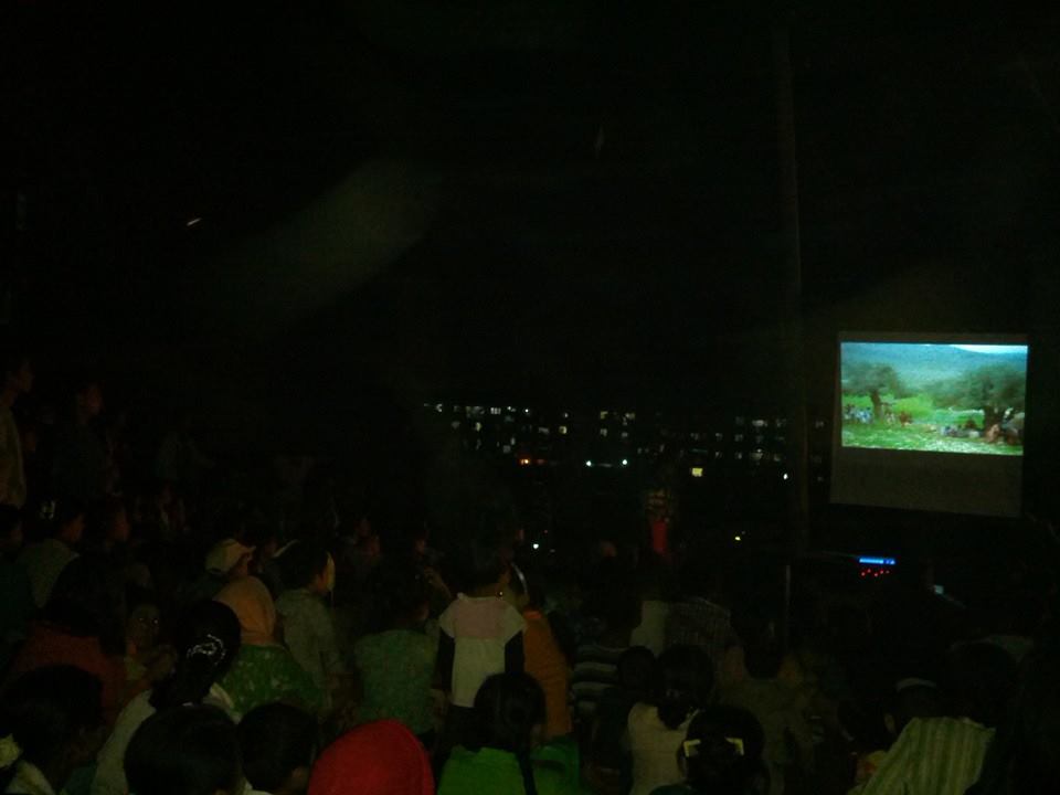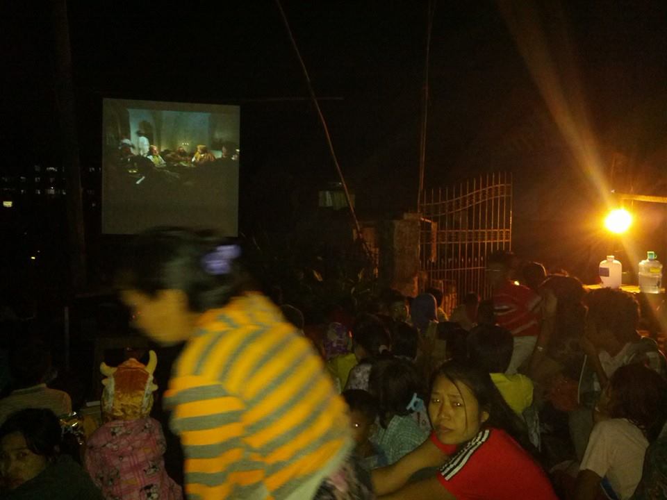 미얀마 슬럼가 전도집회 예수영화 상영중