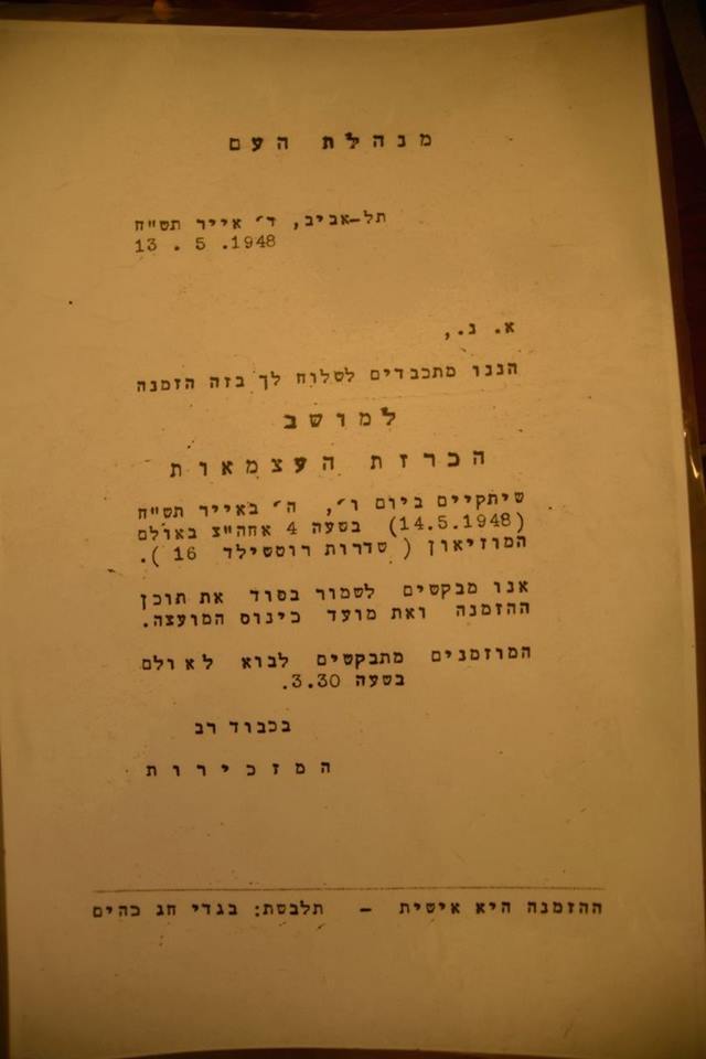 독립선언식 초청장은 하루전날인 5월13일에 전달되었다.